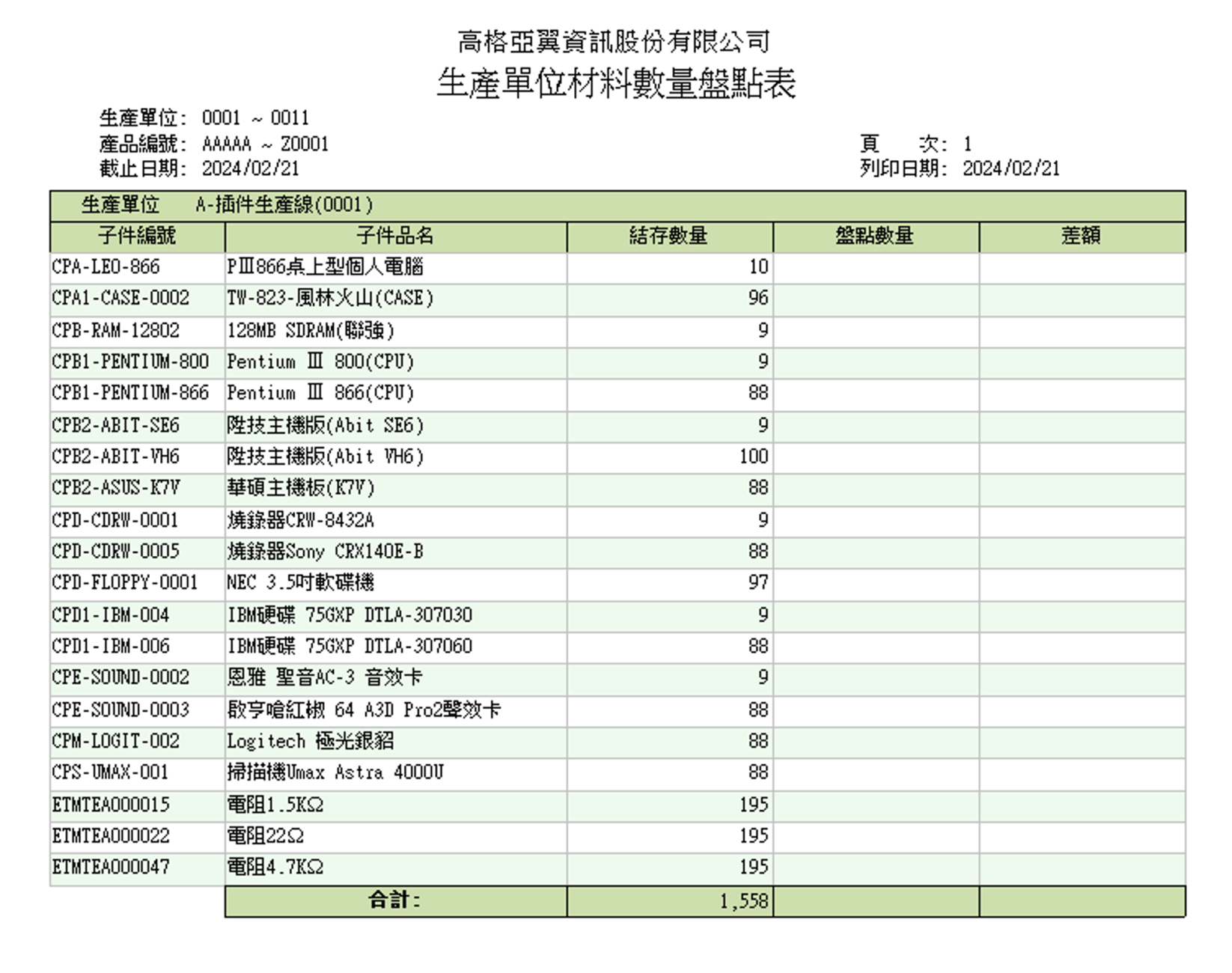 ERP系統中製造業生產單位材料盤點表,掌握委外庫存量